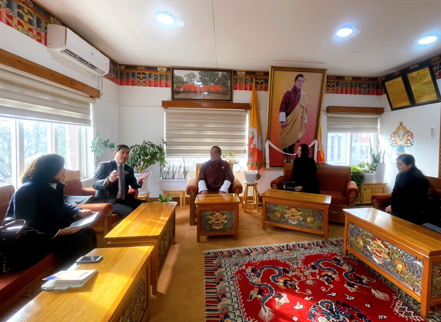 เมื่อวันที่ 28 มกราคม 2569 พันเอก ศรัณยู วิริยเวชกุล รองผู้อำนวยการสำนักงานความร่วมมือพัฒนาเศรษฐกิจกับประเทศเพื่อนบ้าน (องค์การมหาชน) (สพพ.) พร้อมคณะผู้แทน เข้าเยี่ยมคารวะ H.E. Mr. Gem Tshering รัฐมนตรีว่าการกระทรวงพลังงานและทรัพยากรธรรมชาติ โดยหารือความเป็นไปได้ในการสร้างความร่วมมือทางการเงินและวิชาการระหว่าง สพพ. กับภูฏาน โดยเฉพาะอย่างยิ่งความร่วมมือเชิงกลยุทธ์และโอกาสของ สพพ. ในการร่วมมือพัฒนาเทคโนโลยีเพื่อสิ่งแวดล้อมและพลังงานสีเขียว (Environment and Green Technology) โดยมีเป้าหมายเพื่อลดผลกระทบเชิงลบต่อธรรมชาติและปกป้องฟื้นฟูสิ่งแวดล้อมอย่างยั่งยืน ในโอกาสนี้ สพพ. ได้ให้ข้อมูลหลักการและเงื่อนไขการให้ความช่วยเหลือของ สพพ. เพื่อประโยชน์ในการสร้างความร่วมมือสำหรับราชอาณาจักรภูฏานต่อไป ณ กระทรวงพลังงานและทรัพยากรธรรมชาติ กรุงทิมพู ราชอาณาจักรภูฏาน