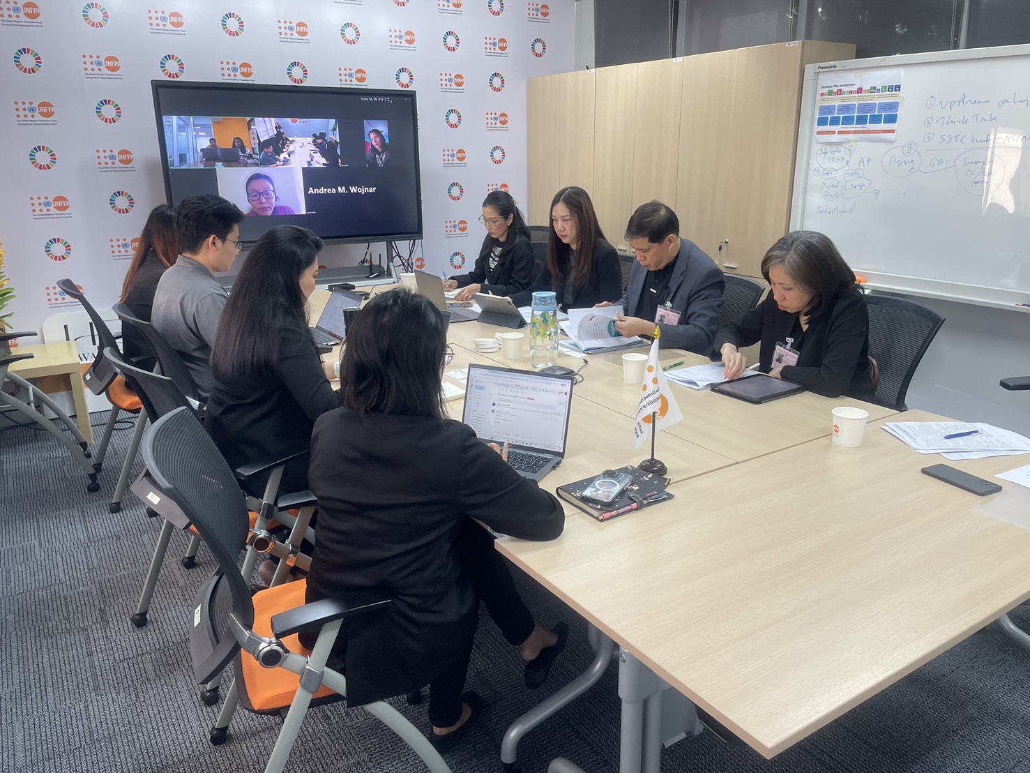 พันเอก ศรัณยู วิริยเวชกุล รองผู้อำนวยการสำนักงานความร่วมมือพัฒนาเศรษฐกิจกับประเทศเพื่อนบ้าน (องค์การมหาชน) (สพพ.) พร้อมด้วยคณะผู้แทน สพพ. เข้าร่วมประชุมกับผู้แทนกองทุนประชากรแห่งสหประชาชาติ หรือ United Nations Population Fund (UNFPA) นำโดยคุณสิริลักษณ์ เชียงว่อง หัวหน้าสำนักงาน UNFPA ประจำประเทศไทย และคณะผู้แทน UNFPA ภูฏาน เข้าร่วมประชุมผ่านช่องทางออนไลน์ นำโดย Ms. Andrea M. Wojnar, UNFPA Representative India Country Office ในการหารือข้อเสนอโครงการความร่วมมือกับราชอาณาจักรภูฏาน โดยการประชุมหารือดังกล่าว UNFPA ภูฏานได้นำเสนอกรอบแนวคิดโครงการความร่วมมือฯ โดย สพพ. ได้สอบถามข้อมูลเพิ่มเติมเพื่อนำมาใช้ประกอบการพิจารณาความร่วมมือของ สพพ. และเปิดโอกาสให้มีการแลกเปลี่ยนข้อมูลการดำเนินงานที่ผ่านมากับราชอาณาจักรภูฏาน หลักการและเงื่อนไขการให้ความช่วยเหลือของ สพพ. ตลอดจนการประสานงานและบทบาทของการดำเนินงานโครงการของ UNFPA เพื่อประโยชน์ในการสร้างความร่วมมือสำหรับราชอาณาจักรภูฏานต่อไป เมื่อวันที่ 4 ธันวาคม 2568 ณ UNFPA สำนักงานประเทศไทย