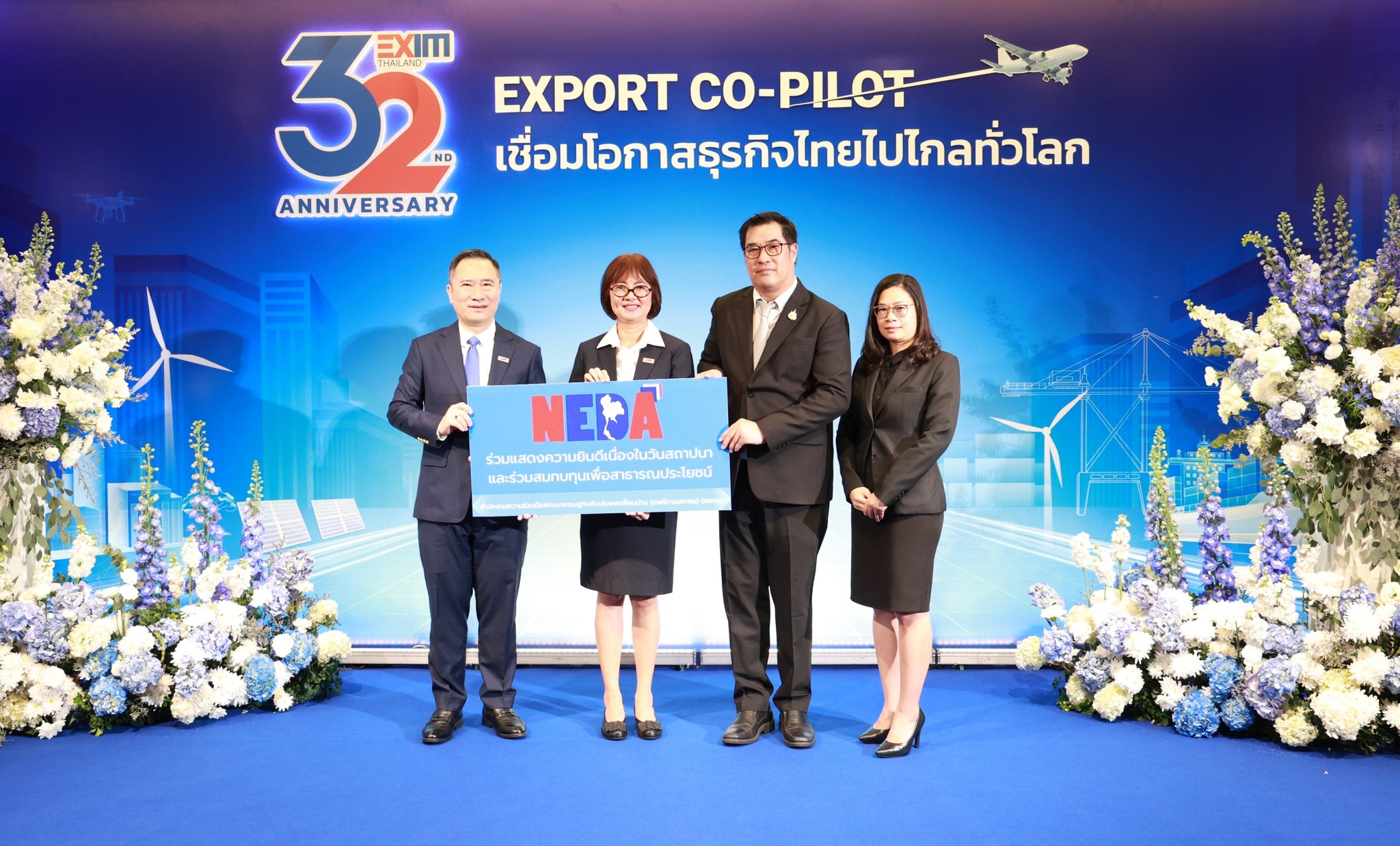นายกีรติ เวฬุวัน รองผู้อำนวยการสำนักงานความร่วมมือพัฒนาเศรษฐกิจกับประเทศเพื่อนบ้าน (องค์การมหาชน) (สพพ.) ร่วมแสดงความยินดีเนื่องในโอกาสวันคล้ายวันสถาปนา ธนาคารเพื่อการส่งออกและนำเข้าแห่งประเทศไทย (EXIM BANK) ครบรอบ 32 ปี ในโอกาสนี้ สพพ. ได้ร่วมบริจาคสมทบทุนมูลนิธิรามาธิบดี ใน “โครงการอาคารโรงพยาบาลรามาธิบดี และย่านนวัตกรรมโยธี” เพื่อสนับสนุนการพัฒนาโครงสร้างพื้นฐานทางการแพทย์และยกระดับนวัตกรรมด้านสาธารณสุขของไทย โดยมี นายชลัช รัตนบุญนิธิ กรรมการผู้จัดการ EXIM BANK ให้การต้อนรับและเป็นผู้รับมอบ ณ สำนักงานใหญ่ธนาคารเพื่อการส่งออกและนำเข้าแห่งประเทศไทย เมื่อวันที่ 17 กุมภาพันธ์ 2569
