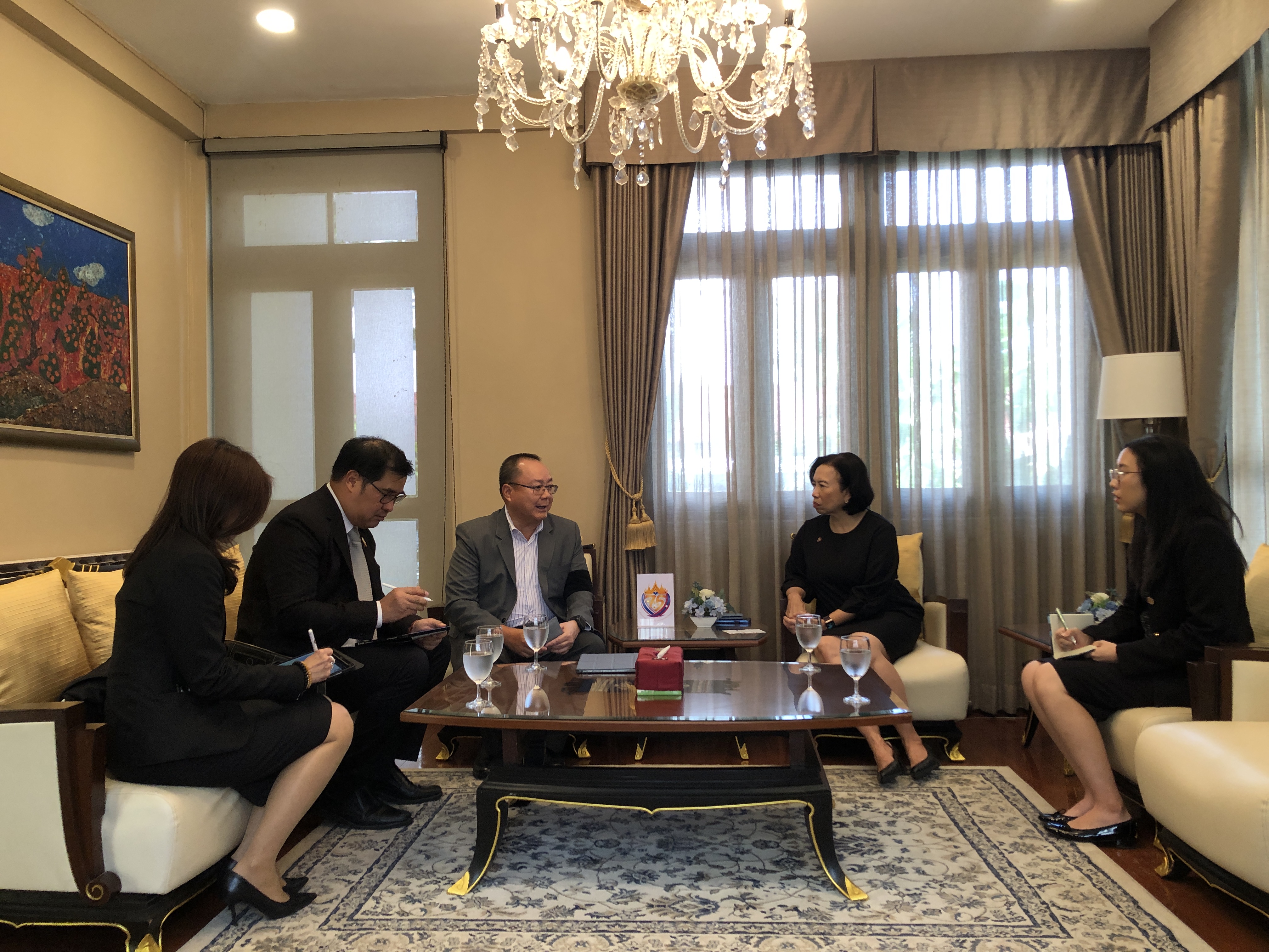 เมื่อวันที่ 25 กุมภาพันธ์ 2569 นายพีรเมศร์ วุฒิธรเนติรักษ์ ผู้อำนวยการสำนักงานความร่วมมือพัฒนาเศรษฐกิจกับประเทศเพื่อนบ้าน (องค์การมหาชน) (สพพ.) พร้อมด้วยนายกีรติ เวฬุวัน รองผู้อำนวยการ สพพ. และคณะ ได้เข้าเยี่ยมคารวะนางครองขนิษฐ รักษ์เจริญ เอกอัครราชทูต ณ เวียงจันทน์ ในโอกาสเข้ารับตำแหน่ง และรายงานการดำเนินความร่วมมือเพื่อการพัฒนาของ สพพ. กับ สปป.ลาว ตลอดจนรายงานสถานะการดำเนินโครงการที่อยู่ระหว่างดำเนินการ และแจ้งแนวทางยุทธศาสตร์ความร่วมมือของ สพพ. กับ สปป.ลาว ในอนาคต ณ สถานเอกอัครราชทูต ณ เวียงจันทน์ นครหลวงเวียงจันทน์ สปป.ลาว