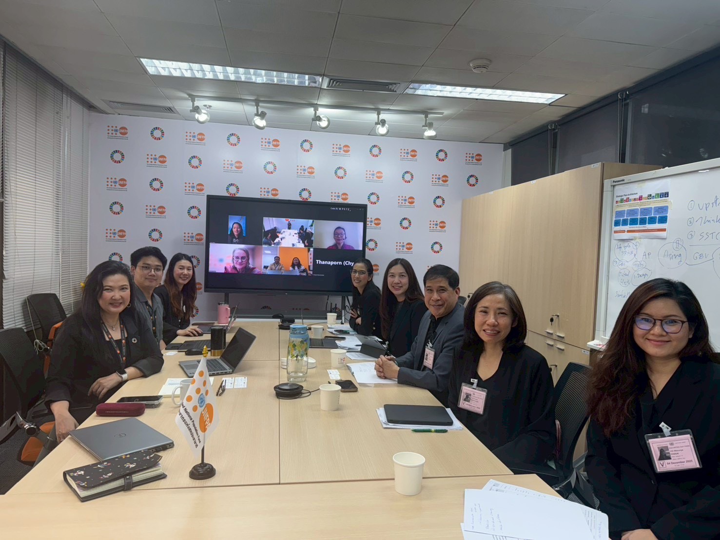 พันเอก ศรัณยู วิริยเวชกุล รองผู้อำนวยการสำนักงานความร่วมมือพัฒนาเศรษฐกิจกับประเทศเพื่อนบ้าน (องค์การมหาชน) (สพพ.) พร้อมด้วยคณะผู้แทน สพพ. เข้าร่วมประชุมกับผู้แทนกองทุนประชากรแห่งสหประชาชาติ หรือ United Nations Population Fund (UNFPA) นำโดยคุณสิริลักษณ์ เชียงว่อง หัวหน้าสำนักงาน UNFPA ประจำประเทศไทย และคณะผู้แทน UNFPA ภูฏาน เข้าร่วมประชุมผ่านช่องทางออนไลน์ นำโดย Ms. Andrea M. Wojnar, UNFPA Representative India Country Office ในการหารือข้อเสนอโครงการความร่วมมือกับราชอาณาจักรภูฏาน โดยการประชุมหารือดังกล่าว UNFPA ภูฏานได้นำเสนอกรอบแนวคิดโครงการความร่วมมือฯ โดย สพพ. ได้สอบถามข้อมูลเพิ่มเติมเพื่อนำมาใช้ประกอบการพิจารณาความร่วมมือของ สพพ. และเปิดโอกาสให้มีการแลกเปลี่ยนข้อมูลการดำเนินงานที่ผ่านมากับราชอาณาจักรภูฏาน หลักการและเงื่อนไขการให้ความช่วยเหลือของ สพพ. ตลอดจนการประสานงานและบทบาทของการดำเนินงานโครงการของ UNFPA เพื่อประโยชน์ในการสร้างความร่วมมือสำหรับราชอาณาจักรภูฏานต่อไป เมื่อวันที่ 4 ธันวาคม 2568 ณ UNFPA สำนักงานประเทศไทย