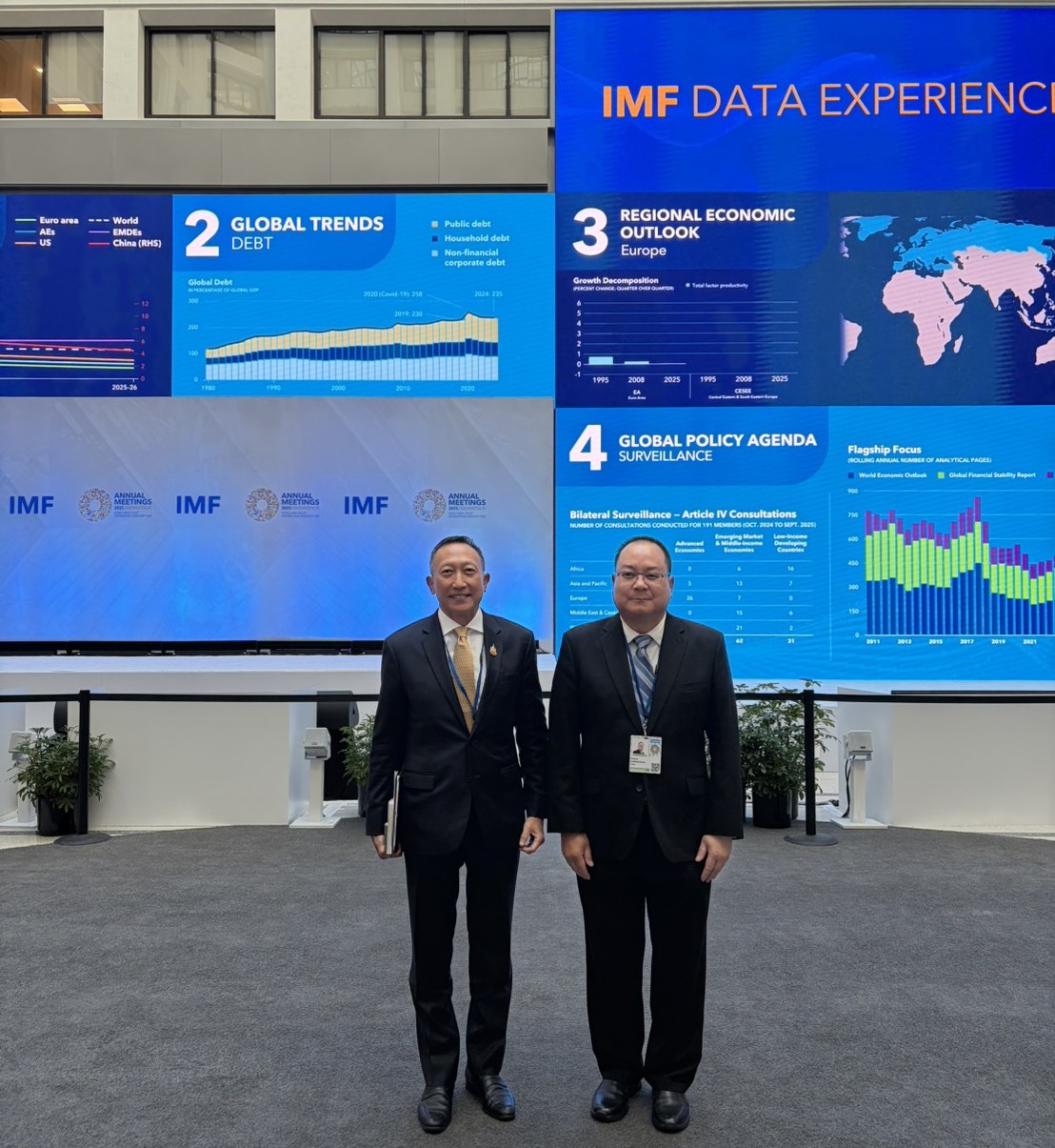 นายพีรเมศร์ วุฒิธรเนติรักษ์ ผู้อำนวยการสำนักงานความร่วมมือพัฒนาเศรษฐกิจกับประเทศเพื่อนบ้าน (องค์การมหาชน) (สพพ.) และ พันเอก ดร. ศรัณยู วิริยเวชกุล รองผู้อำนวยการ พร้อมคณะผู้แทนไทย เข้าร่วมการประชุมประจำปีสภาผู้ว่าการธนาคารโลกและกองทุนการเงินระหว่างประเทศ (World Bank-IMF) ณ กรุงวอชิงตัน สหรัฐอเมริกา เมื่อวันที่ 17 ตุลาคม 2568